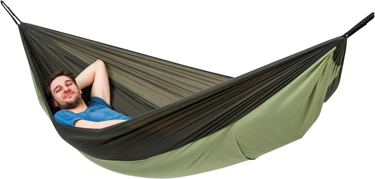 Die extragroße Leichthängematte kommt ohne die typischen Aufhängeschnüre aus und hat dadurch eine extra lange Liegefläche. Die Hängematte ist aus Fallschirmseide gefertigt. Dieses Hochleistungsmaterial ist nicht nur äußerst strapazierfähig und stabil, sondern auch noch weich, angenehm auf der Haut und atmungsaktiv! Nochmal größer als die bereits großen Silk Traveller ist unsere XL Variante. Damit sie zwischen zwei Bäume passt, ohne die typischen Silk Traveller Schnüre.