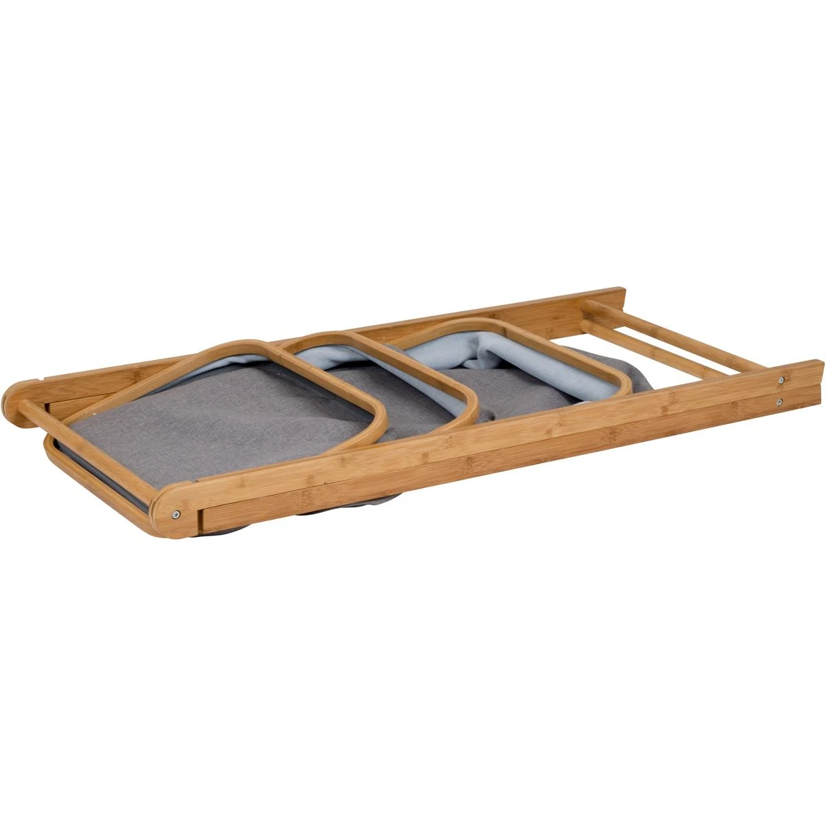 Ein stilvoller Schrank mit 3 Körben. Der Rahmen ist aus Bambus und die Körbe aus einem luxuriösen Polyester-Gewebe mit einem Leinen-Look gemacht. Die Körbe haben unterschiedliche Höhen und sind leicht zu falten. So sind die Gegenstände leicht zu verstauen. Ideal für im Zelt, sondern auch in der Wohnung, zum Beispiel im Bad. Nach Gebrauch ist dieser Schrank kompakt faltbar auf eine Höhe von nur 6 Zentimetern.