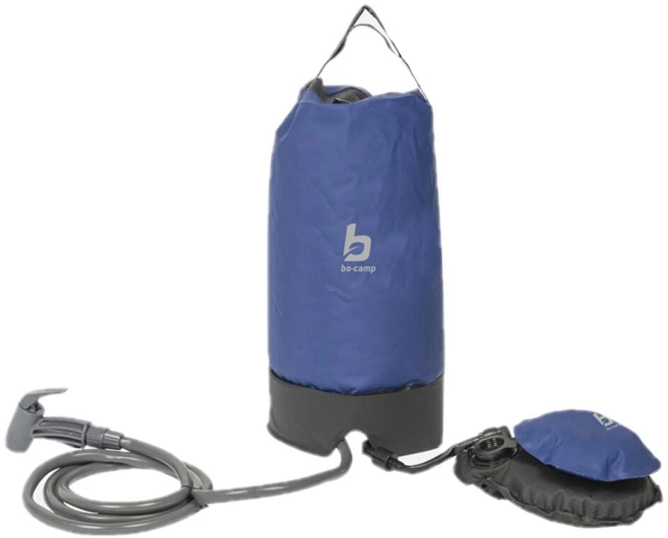 Dank des Fußpumpensystems muss die Campingdusche nicht aufgehängt werden.