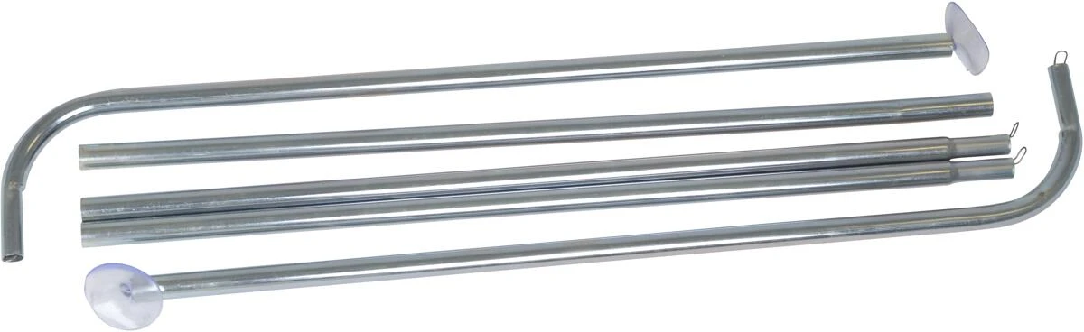 - Mit Schnur zur Befestigung an der Caravan-Schiene und Saugnäpfen am Rahmen zur Bestätigung gegen den Caravan.