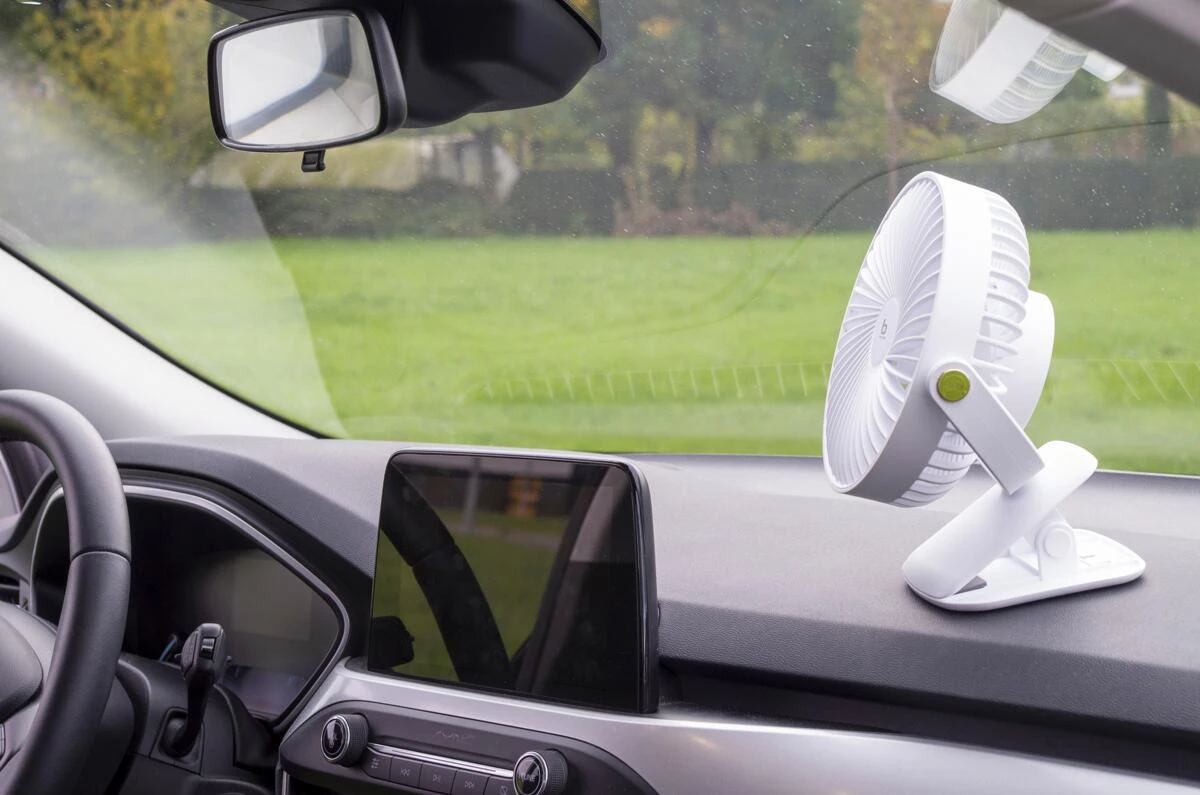 Ein praktischer Tischventilator mit Klemme. Wenn Sie eine Abkühlung brauchen, ist dies das ideale Ergebnis an heißen Tagen. Einfach an der Kante eines Tisches, Stuhl oder einer anderen ähnlichen Oberfläche mit der Klemme zu befestigen. Der Ventilator ist in der gewünschten Position verstellbar. Sehr gut geeignet für Camping, zu Hause, auf dem Balkon usw. Der Akku kann über USB aufgeladen werden. Akku-Kapazität: 1200mAh.