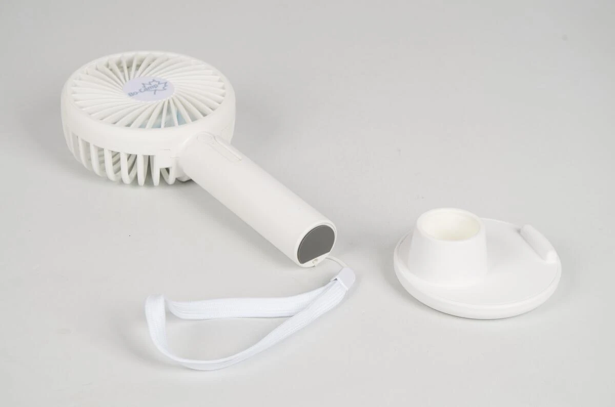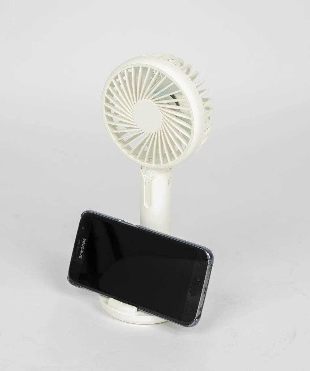 Ein kompakter Handventilator mit Halterung. Wenn Sie eine Abkühlung brauchen, ist dies das ideale Ergebnis an heißen Tagen. Handliches Format, das man überallhin mitnehmen kann. Kann auch in der Halterung auf einem Tisch, etc. platziert werden. Sehr suiTisch für Camping, zu Hause, auf dem Balkon, etc. Der Akku kann über USB aufgeladen werden.