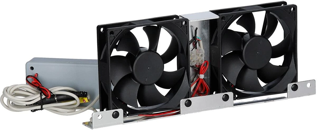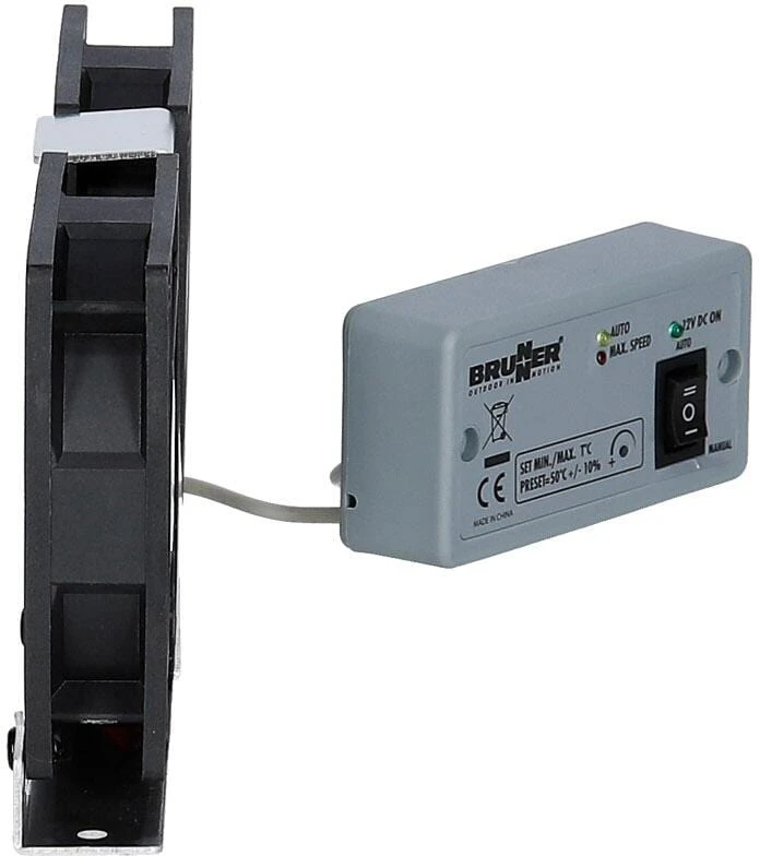 Elektronische Steuerung der Lüftergeschwindigkeit über den eingebauten Temperatursensor. Verbessert die Kühlleistung des Kühlschranksspürbar, indem der Wärmestau weitestgehend vermieden wird. Mittels dem Doppelventilator sindbis zu 30% Energieeinsparung bei Absorber-Kühlschränken möglich. Der Thermostatschalter schaltet den Ventilator bei höheren Umgebungstemperaturen automatisch ein. 2 Geschwindigkeitsstufen. Vormontiert auf Befestigungsrahmen