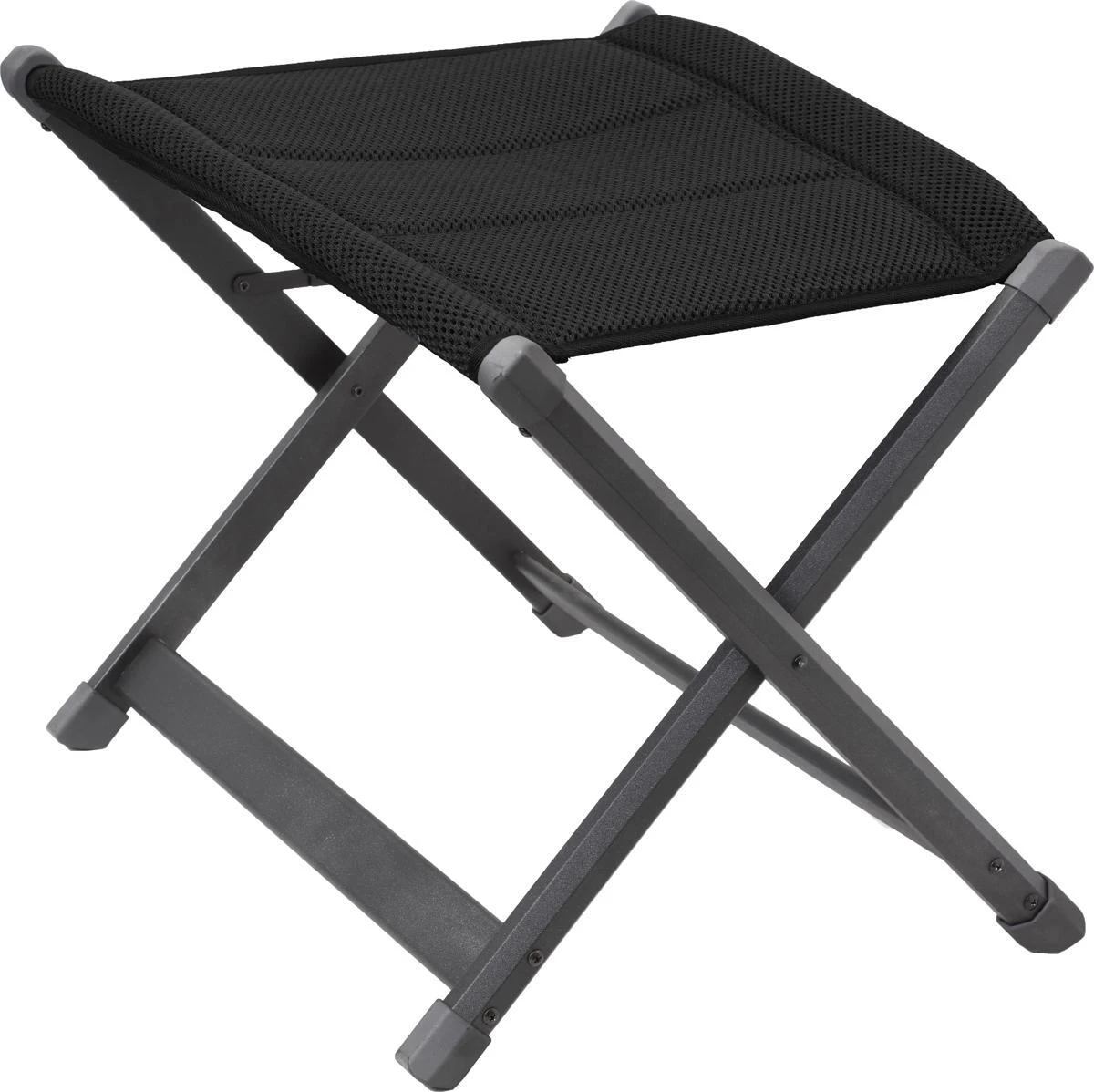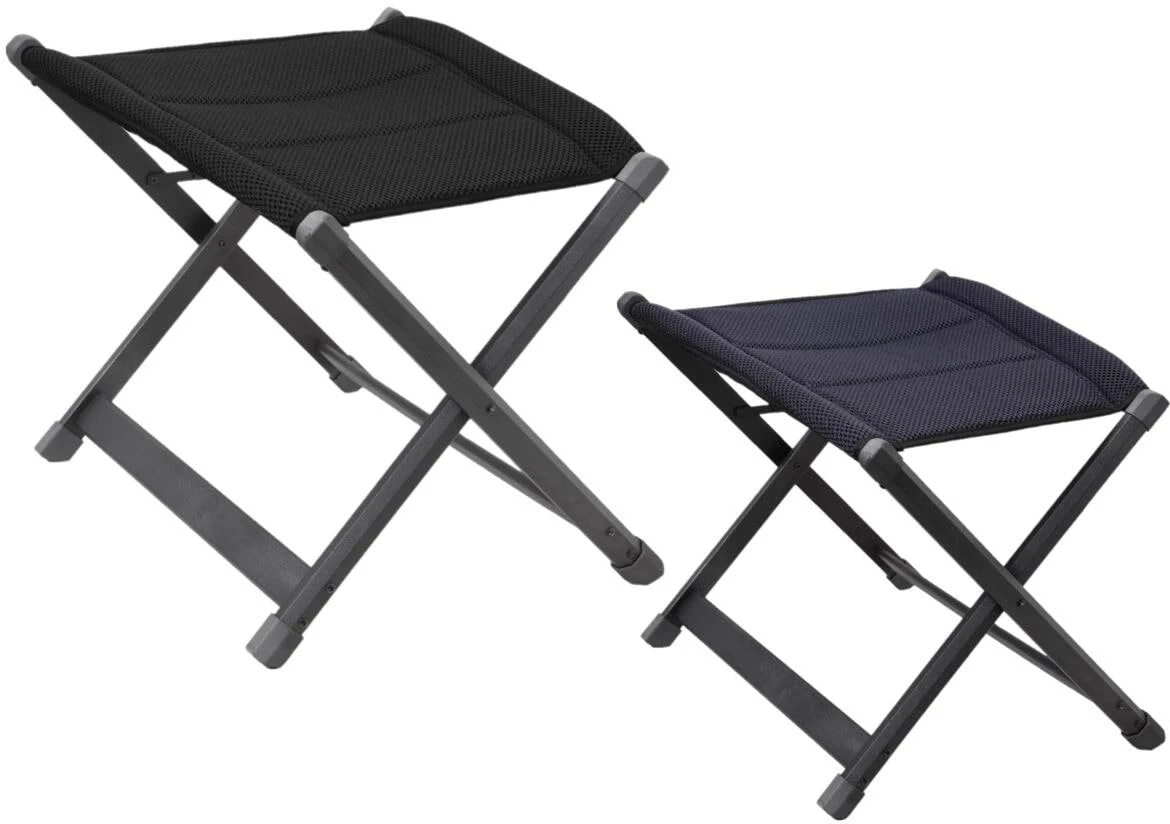 Freistehende 4-beinige Fußauflage mit atmungsaktivem Full-3D-Bezug, mit pulverlackiertem Alu-Gestell.