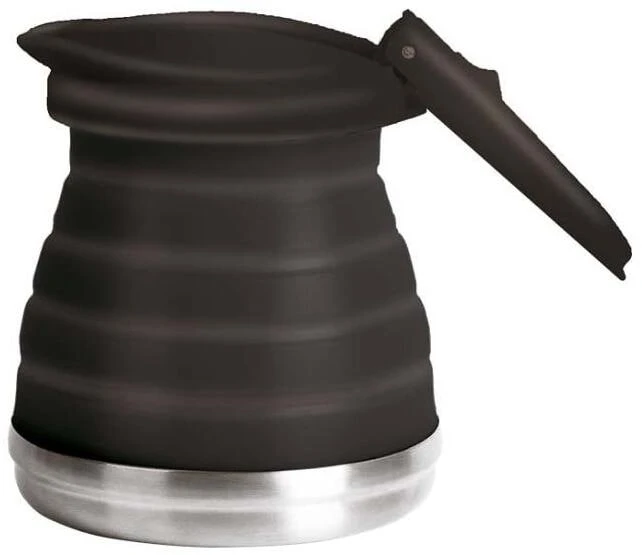 Faltbarer Wasserkessel mit Boden aus Edelstahl. Für Gas & Herdplatte geeignet. Mit klappbarem Griff.