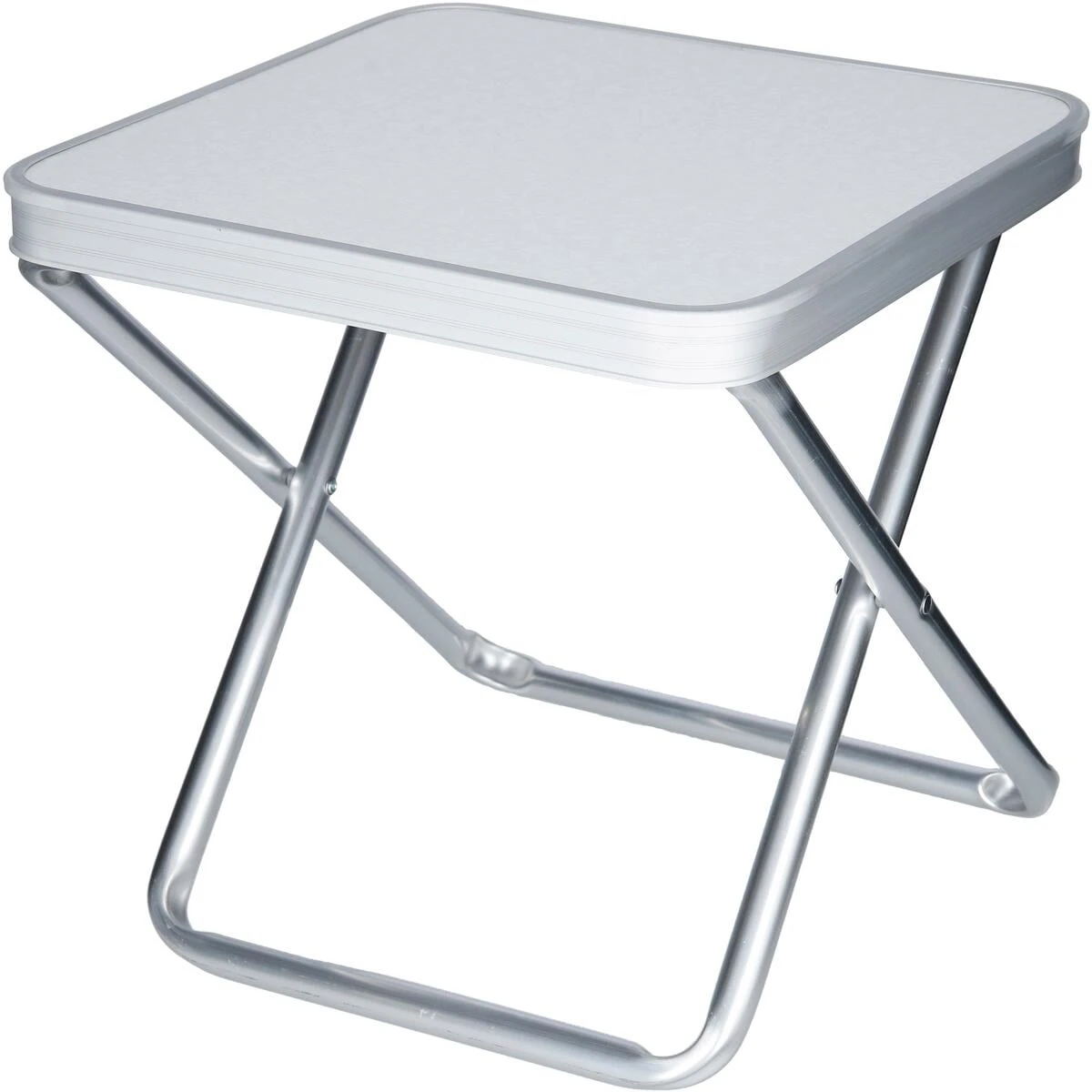 Hocker mit Tischplatte aus leichtem Aluminium.