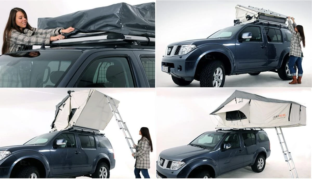 Das Dachzelt kann auf fast jedes Auto ganz einfach montiert werden. Man benötigt lediglich 2 Querstreben/Lastenträger worauf das Dachzelt mit den mitgelieferten U-Schrauben befestigt wird. Eine Montage DIREKT an einer Dachreling wird nicht empfohlen, da der Abstand zum Dach sehr gering wäre und die U-Schrauben Kratzer verursachen könnten. Man benötigt also auch bei einer vorhandenen Dachreling auch Querstreben/Lastenträger. Bezüglich der Dachlast, muss man sich ebenfalls keine Sorgen machen. Bei den meisten Fahrzeugen liegt die Dachlast zwischen 75-100 kg. Mit einem Gewicht von 60 kg liegt das Adventure Dachzelt also voll im Rahmen. Diese Angabe bezieht sich ohnehin nur auf die Belastung während des Fahrbetriebs. Im Stand darf das Gewicht deutlich höher sein. Starte also in dein nächstes Abenteuer mit dem CAMPWERK Adventure Dachzelt!