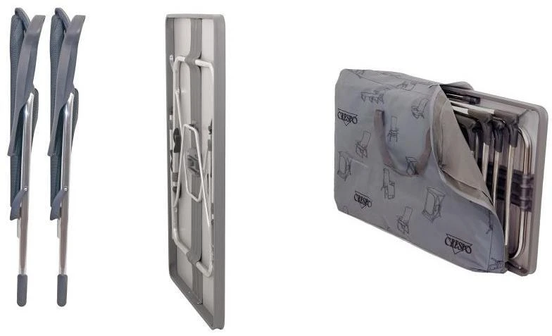 - 2 Campingstühle AL 213 mit stufenlos verstellbarem Kopfteil und der 7-fach verstellbaren Rückenlehne