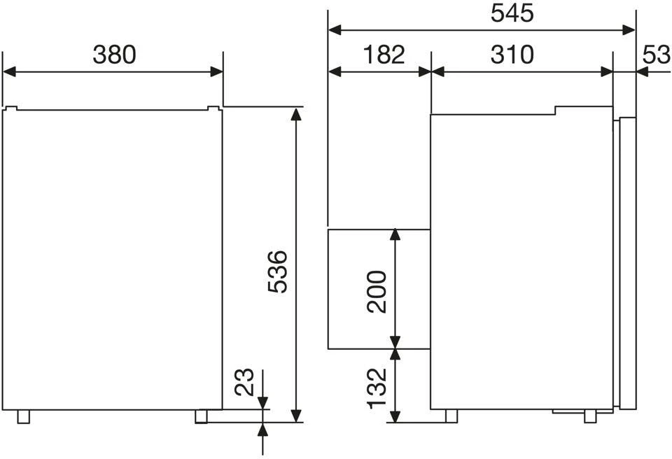 - 384 x 536 x 492 mm / 384 x 536 x 310 mm