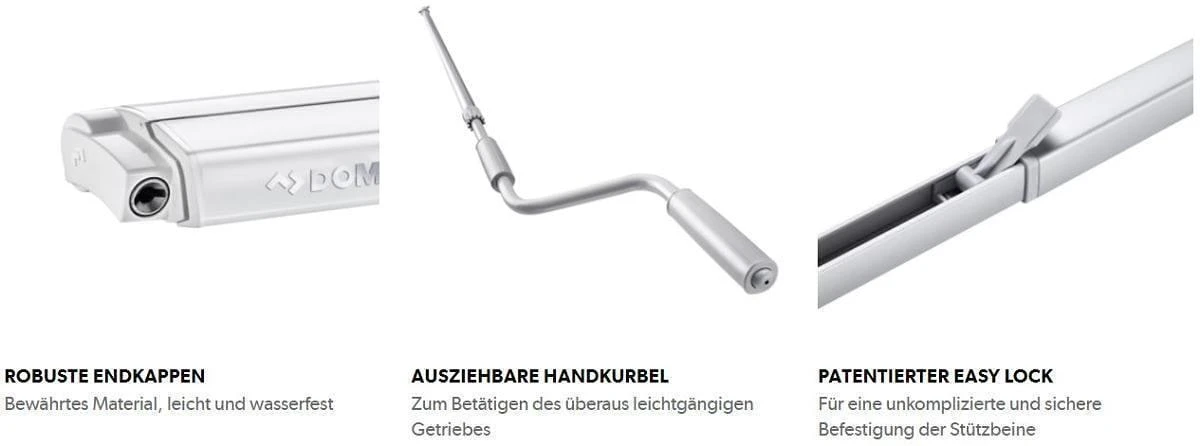 - Stützfüße mit patentiertem Easy Lock Flipper – verhindert unabsichtliches Herunterfallen