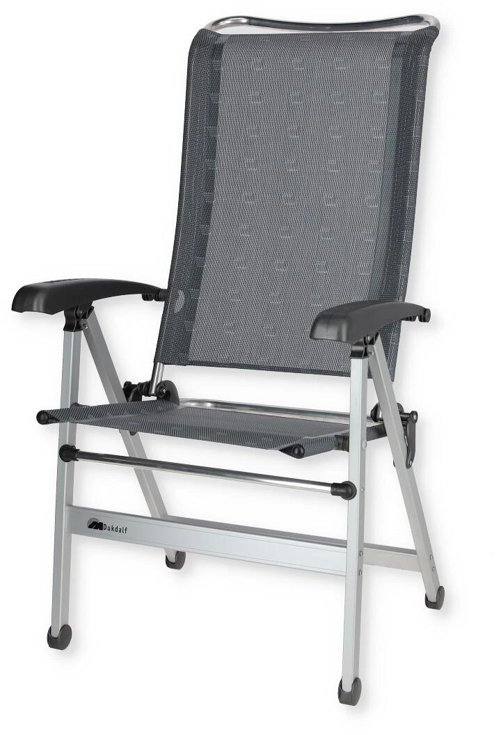 Klappsessel aus stabilem Vierkantrohr mit 8-fach verstellbarer Rückenlehne.