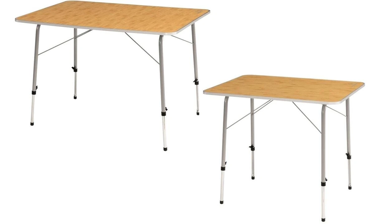 Genieße das Essen im Freien mit dem Easy Camp Menton Klapptisch. Dieser Tisch wurde für gemeinsame Outdoor-Abenteuer entwickelt. Er bietet bis zu vier Personen bequem Platz und hat zusätzliche Querstützen für noch mehr Stabilität. Die Stahlfüße können so eingestellt werden, dass sie Unebenheiten im Boden ausgleichen, damit man immer eine ebene Fläche hat. Die elegante, bambusbeschichtete MDF-Platte ist spritzwassergeschützt und leicht zu reinigen.