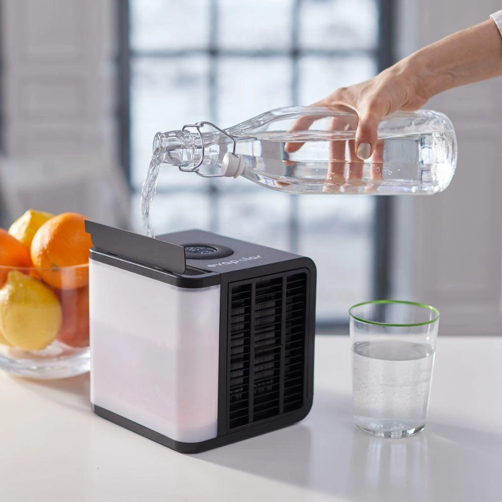 Der erste persönliche Klimaverbesserer evaLIGHT befeuchtet, reinigt und kühlt die Luft bis auf 17°C.