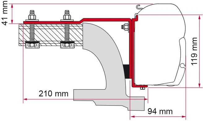 Markisenhalterung zur Montage der Markise am Fahrzeug (Reisemobil, Caravan, Kastenwagen oder Camping-Bus)