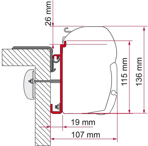 Markisenhalterung zur Montage der Markise am Fahrzeug (Reisemobil, Caravan, Kastenwagen oder Camping-Bus)