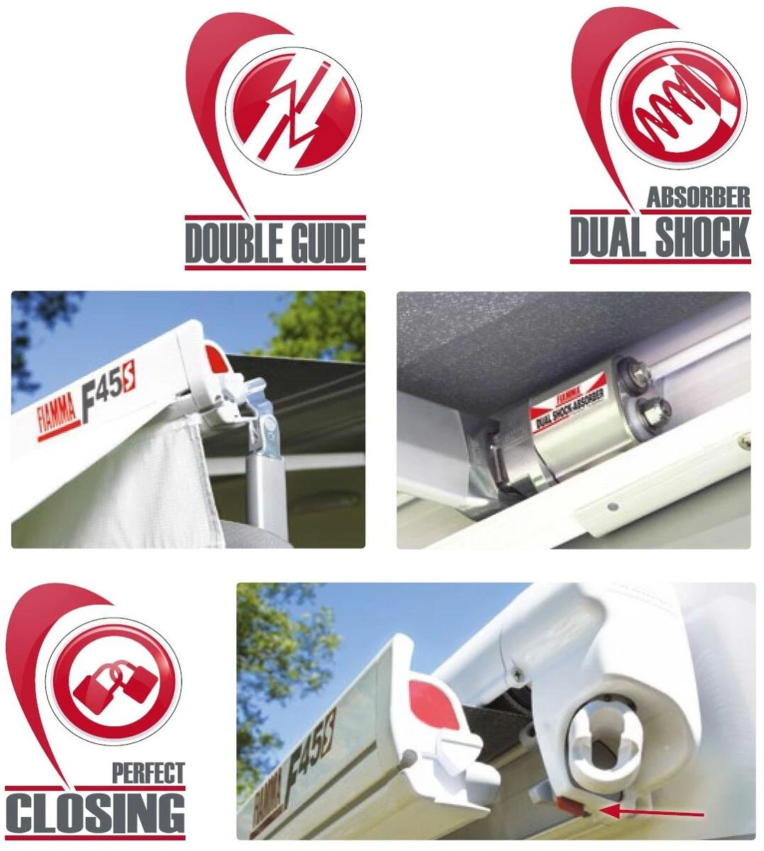 Dual Shock Absorber: Dämpfhalterung mit Doppelschraube, patentiertes Double-Block, was sowohl die Markise als auch Ihr Fahrzeug schützt