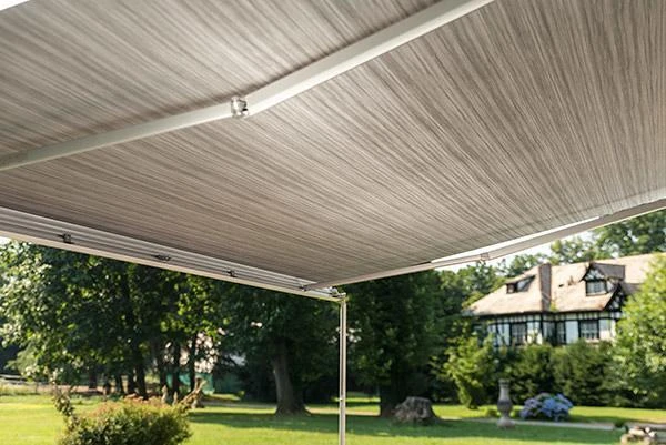 Triple Guide: die einzige Markise mit 3 Kederschienen in der Frontblende, sie ermöglicht so z. B. die Anbringung der Frontwand des Privacy Room Vorzeltes, einer zusätzlichen Frontwand und den Kit Awning Hangers