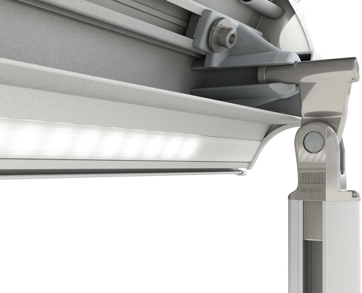 LED-Beleuchtungskit speziell für die Markisen F65 und F80 bestehend aus einem 5 m langen LED-Klebestreifen. Einfach und schnell auf die Wunschlänge kürzbar. Serienmäßig mit zehn Lichtpunkten aus 50 cm PVC ausgestattet, die in das Innenprofil der Frontblende eingesetzt werden.
