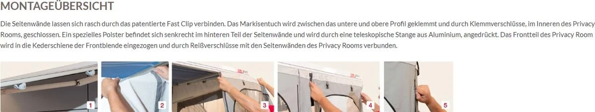 - mit FAST CLIP System zur winddichten Verbindung zwischen Markisentuch und Seitenteilen