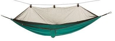 Bereit für eine echte Abenteuertour? Die Bass Mosquito Hängematte ist Ihr Begleiter für eine Tour der wilden Art. Sie ist leicht, mit kleinem Packmaß, aber dennoch robust. Diese Version ist mit einem angenähten Moskitonetz ausgestattet, welches Dich vor Käfern und Insekten schützt. An der Vorderseite mit Reißverschluss versehen. Man kann aber auch unter offenenem Himmel schlafen. Alles, was du brauchst für die Nutzung ist im Packsack enthalten – mit Ausnahme von zwei Bäumen zum Aufhängen. Komplett mit einem Paar Baumschützern, zwei lange Gurtbänder, die größere Entfernungen zwischen Bäumen ermöglichen und zwei Karabinerhaken zum einfachen Einklicken der Hängematte.