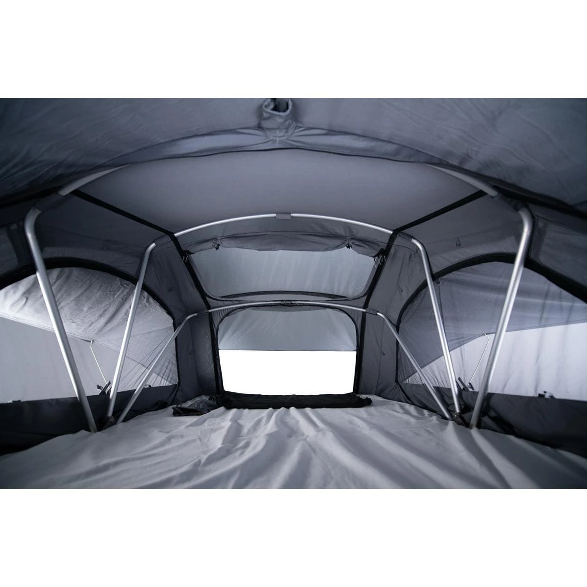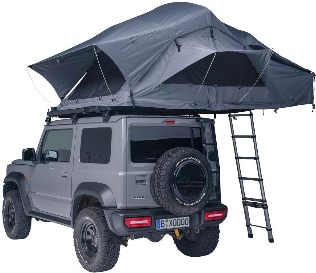Das Softtop Dachzelt Villmark 160 ist die ideale Lösung für Outdoor-Enthusiasten, die spontan und dennoch komfortabel Reisen wollen.Mit einer Liegefläche von 155 x 235 cm bietet das Villmark 160ausreichend Platz für 3 Erwachsene.Das Dachzelt besteht aus einem strapazierfähigen,wasserdichten Baumwollmischgewebe (65% Polyester 35% Cotton), das Wind und Wetter standhält.Die Bauart sorgt für einen regengeschützten Eingang.Das abnehmbare Überdach ist aus recyceltemPolyester und bietet zusätzlichen Schutz vor Regen und UV-Strahlung.Bei gutem Wetter eröffnet dasPanorama-Dachfenster einen himmlischen Ausblick.Für einen hohen Schlafkomfort sorgt die 8 cm hohe Matratze.Der abnehmbare Matratzenbezug ist in der Maschinewaschbar. Zur weiteren Ausstattung gehören zwei Schuhorganizer,ein Staunetzsowieeine Teleskopleiter.Dieverarbeiteten Materialien anallenDachzelten von Groenberg sind PFC-frei.Mit der passenden Kabine in den Größen S, M, L kann dasVillmark 160 nach Beliebenerweitert werden.Unter die Matratze empfiehlt es sich ein 3D-Aimesh Lüftungsgewebe aus unserem Dachzelt-Zubehörzu legen, das einer Feuchtigkeits-und Kondenswasserbildungim Dachzeltvorbeugt.Das 3D-Airmesh Lüftungsgewebe unterstützt dieLuftzirkulation im Zelt, sodass bei kühlen Außentemperaturen dieFeuchtigkeit problemlos entweichen kann.