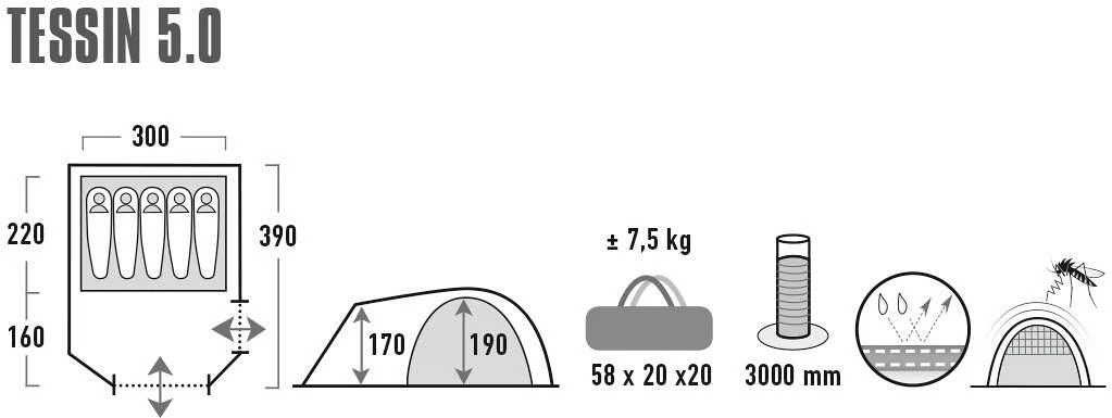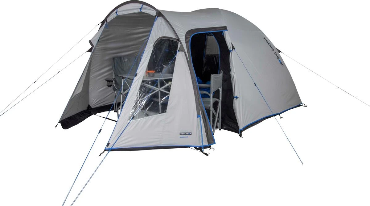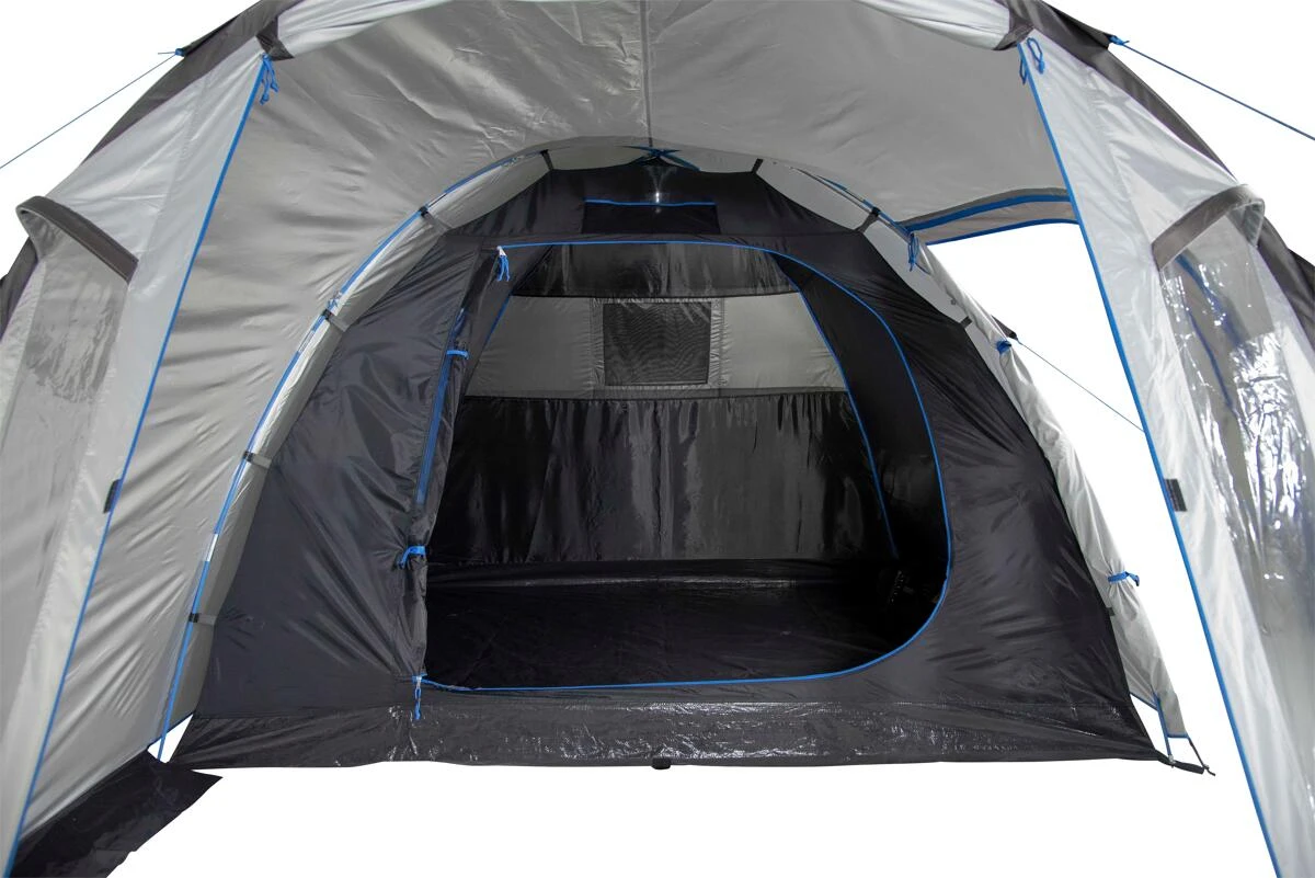 Die Nähte sind mittels Nahtband wasserdicht versiegelt und gewähren eine bessere Naht- Reißfestigkeit. Abgedunkeltes Innenzelt mit Vario Vent Control System. Der Gazeeingang hält lästige Plagegeister fern und kann bequem von innen je nach Klima variabel bedient werden. Die Abdeckklappe verstaut man einfach in einer Tasche. Das Lästige aufrollen gehört der Vergangenheit an. Dauerlüfter klimatisieren das Innenzelt.
