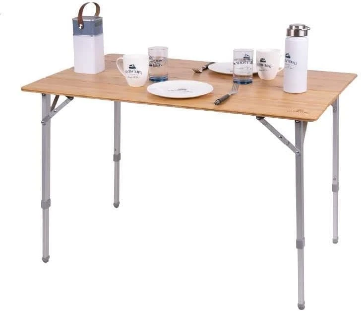 Ideal für Minicamper und Vans ist der Bambus-Tisch aus der exclusiven Holiday-Travel Serie aufgrund seines sehr kleinen Packmaßes. Der höhenverstellbare Tisch (42-65 cm) ist perfekt für 2-4 Personen.