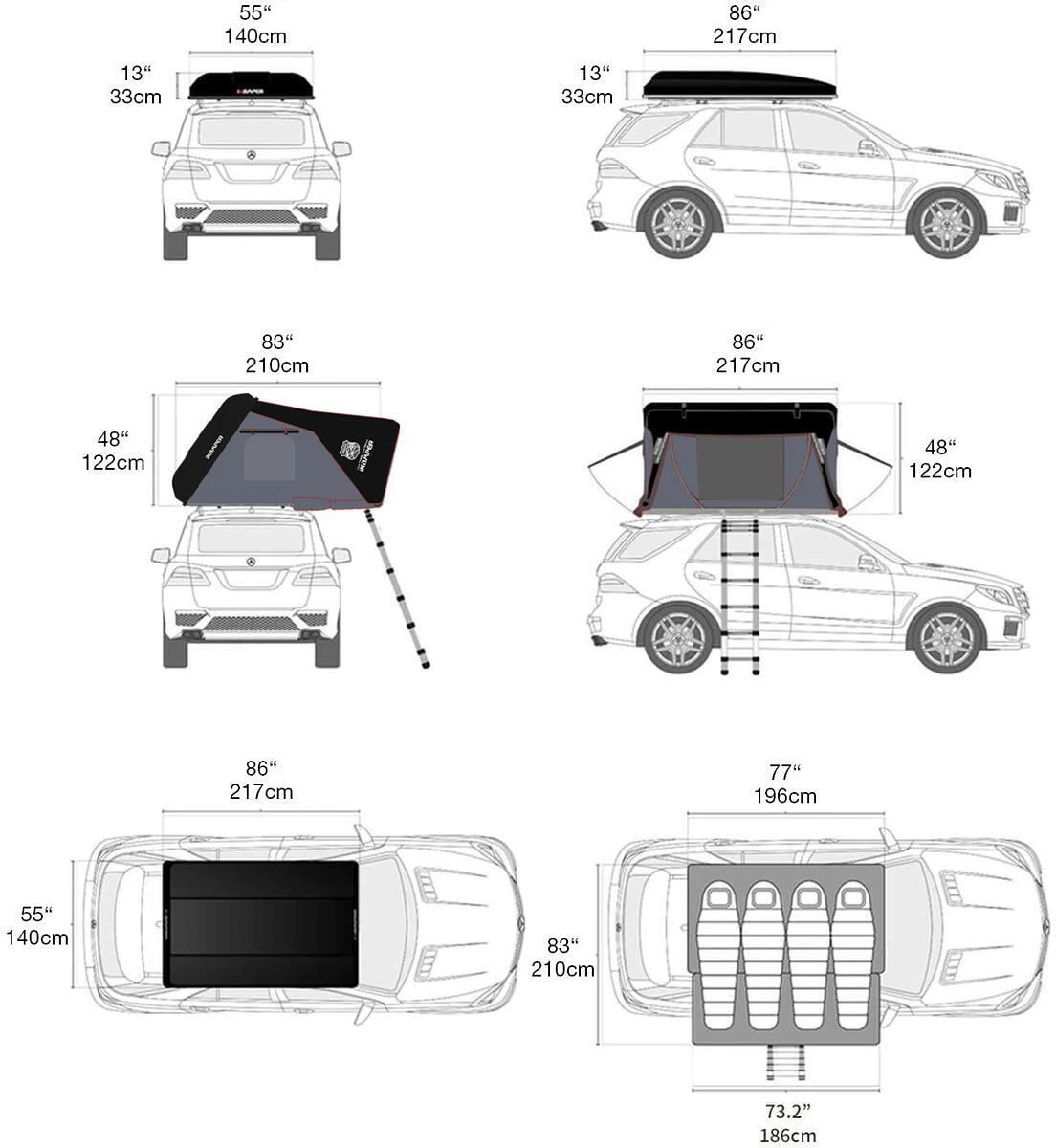 - Skycamp 3.0 Rocky Black Dachzelt (inklusive Leiter, Matratze, Sturmstopper, Federstäbe, Tropendach und Montagematerial)