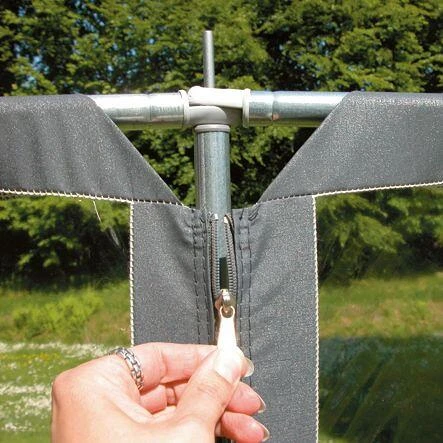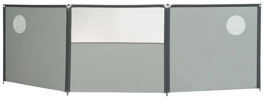 3-teiliger Windschutz mit Aufstell- und Querstangen sowie spezieller Bodenverankerung