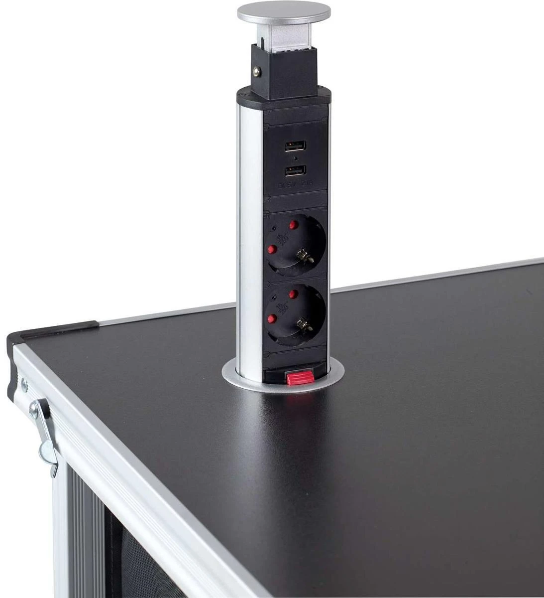 Die moderne und clevere Art der Stromversorgung beim Campen. Bei Bedarf kann dieser Stromversorgungsturm einfach aus dem Schrank hochgezogen werden. Dann stehen Ihnen 2 Schuko- und 2 USB- Anschlüsse zur Verfügung. Bei den neuen Isabella Campingschränken ist das Montageloch bereits vorgesehen. Bei älteren, könnte es nachträglich gebohrt werden.