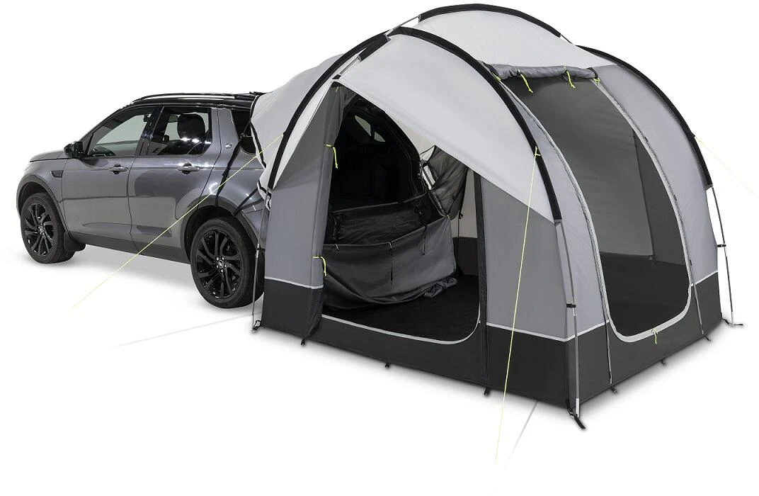 Ein Vorzelt mit universeller Passform für Fahrzeuge mit Heckklappe wie SUVs, Allzweckfahrzeuge, Crossover, große Kombis und Geländewagen mit Aufbau. Das Weathershield™ 68D-Material gewährleistet lange Haltbarkeit und einfache Handhabung. Wenn Gäste kommen, bauen Sie einfach das optionale Innenzelt mit zwei Schlafplätzen ein. Das Heckvorzelt lässt sich schnell anbringen und trennen, und wird bequem mit Reißverschluss geschlossen, wenn Sie sich auf den Weg in Ihr Abenteuer machen.
