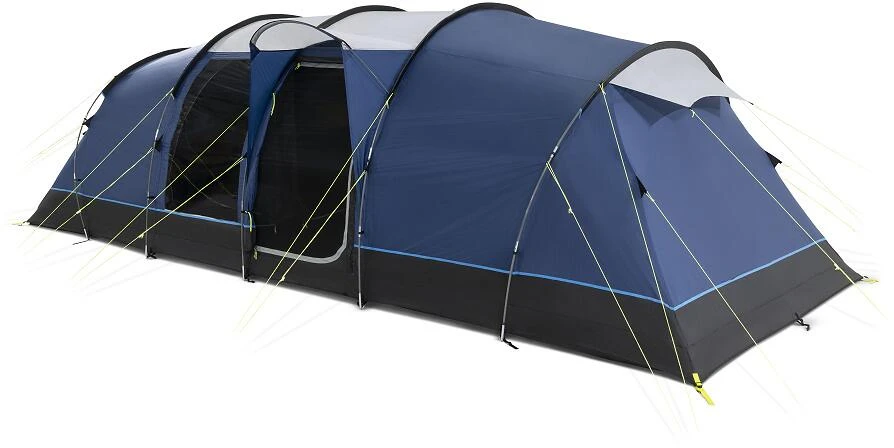 Das luftig-leichte Watergate verfügt über zwei große Seitentüren, von denen eine durch ein Vorzelt vor Nässe geschützt ist. Das Zelt ist mit Netzeinsätzen und hohen Fenstern ausgestattet. Die Höhe des Zeltes kann sich sehen lassen: sogar in den Schlafräumen können Sie stehen. Bei nasser Witterung sorgen die Belüftung über das rückseitige Paneel und die eingenähte Bodenplane für trockenen Komfort.
