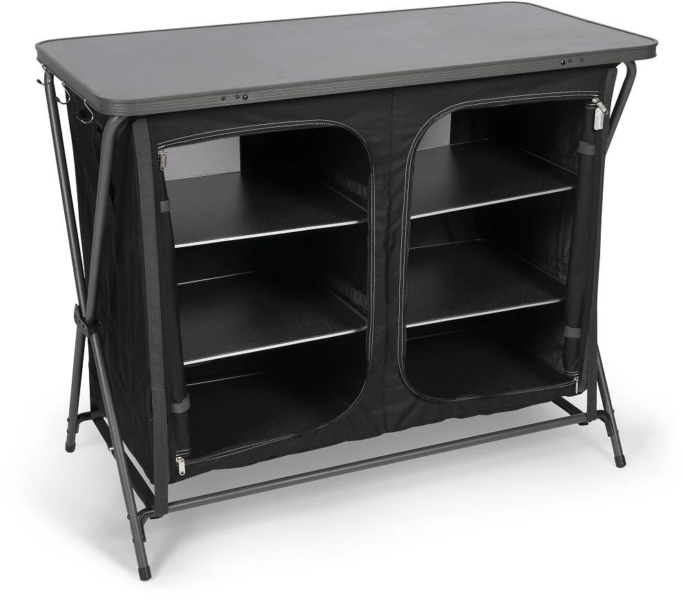 Der Zara Campingschrank ist ein kompakter und dennoch breiter Schrank. Dank seines XPRESS-Aufbausystems ist er in Sekundenschnelle einsatzbereit. Mit seiner massiven Tischplatte kann er alternativ auch als Feldküche genutzt werden.