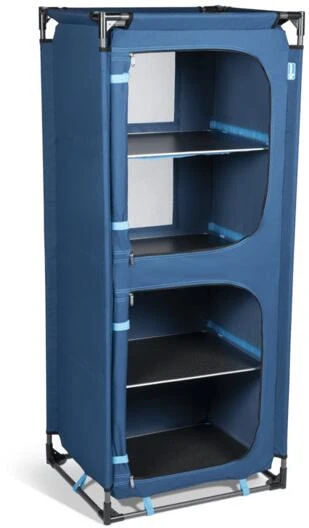 Verstauen Sie Ihr Gepäck im Kampa Susie Schrank und halten Sie Ihr Zelt schön ordentlich. Der Schrank lässt sich rasch aufstellen und dank seiner kompakten Größe und seines geringen Gewichts auch mühelos transportieren. Er verfügt über vier Innenfächer, einen soliden Aluminiumrahmen und eine langlebige, laminierte Arbeitsfläche. Das ideale Möbelstück für Ihren Campingurlaub.