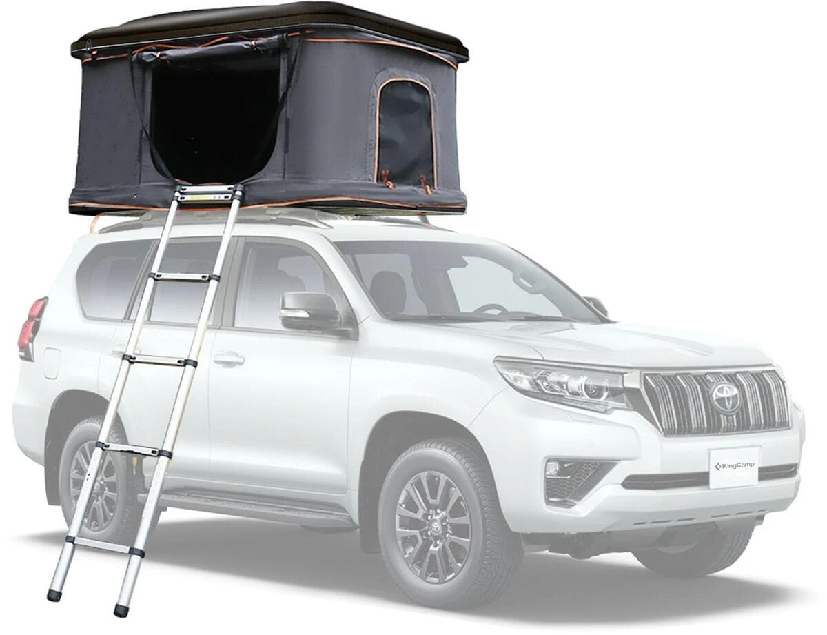 Mit dem Castiglio Ncello präsentiert KingCamp ein luxuriöses Automatik-Dachzelt, in dem 2 Personen bequem Platz finden. Das Zelt lässt sich auf einem geeigneten Dachgepäckträger (nicht im Lieferumfang enthalten) montieren und durch das hydraulischen Gestänge einfach & innerhalb weniger Sekunden aufklappen. Die erhöhte Schlafposition und die umfangreiche Ausstattung sorgen für ein einzigartiges Gefühl von Komfort und Sicherheit. Dank dem wasserfesten Dach und der PU-beschichteten Außenhülle mit 3000 mm Wassersäule bietet das Zelt optimalen Schutz vor Wind und Wetter, während die Fenster und Türen an jeder Seite für eine ideale Luftzirkulation sorgen. Die Fenster verfügen über Moskitonetze und die Türen über einen aufstellbaren Regenschutz. Die integrierte Queen Size-Matratze mit 120 x 200 cm bietet ein komfortables Schlaferlebnis. Im Lieferumfang enthalten ist eine Alu-Teleskopleiter mit einer maximalen Länge von 2,3 m, über die sich das Dachzelt bequem erreichen lässt. Im gefalteten Zustand bietet das Zelt dank dem aerodynamisch geformten Dach einen geringen Luftwiderstand und verursacht kaum Windgeräusche beim Fahren.