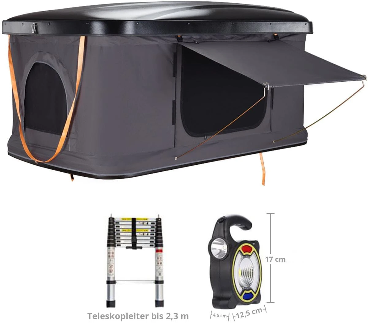 Lieferumfang: Dachzelt inkl. Matratze, Alu-Teleskopleiter, Montagematerial