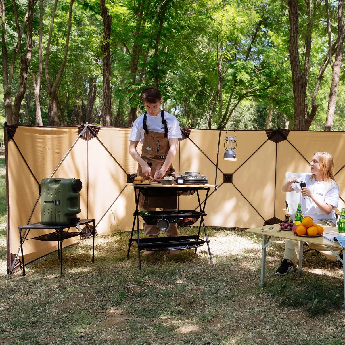 Der Camden ist ein innovativer Windschutz der über ein integriertes Fiberglas Gestängesystem verfügt welches den Aufbau sehr schnell und unkompliziert gestaltet. Alle vier Elemente sind mit zusätzlich stabilisierenden Glasfiberstangen und Quick Up System versehen wodurch es möglich ist jedes Element einfach wie einen Schirm aufzuklappen. Die hochwertige technische Baumwolle verleiht dem Camden ein individuelles Glamping-Design und ist dabei langlebig, reißfest und windstabil. Die Stahlstangen sorgen für extra Stabilität und lassen sich einfach in die vorgesehenen Kanäle schieben. In diesem Zustand können dann Abspannleinen und Heringe komfortabel angebracht werden da der Windschutz bereits recht stabil ist. Ob auf Glamping-Trips, Festivals oder bei Events – mit dem Camden sind Sie ideal ausgerüstet. 5 Stahl-Aufstellstangen, Spannleinen, Heringe und ein praktischer Packsack sind im Lieferumfang enthalten.