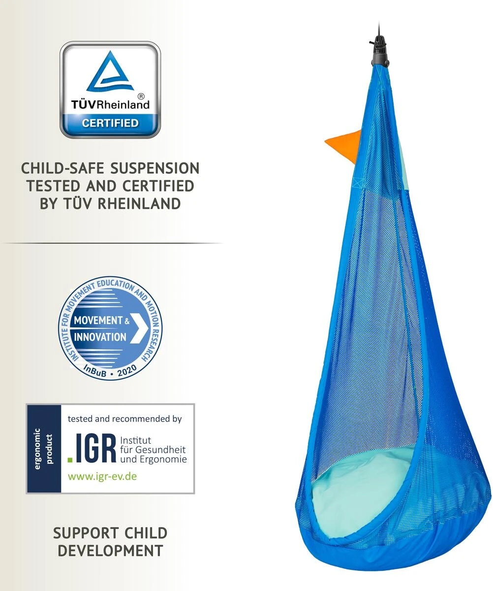 Die neue Generation unserer Hängehöhlen für Kinder verfügt nicht nur über ein modernes Design, sondern setzt auch neue Standards in Sachen Sicherheit. Die smarte Befestigung ist jetzt schon im Kaufpreis enthalten.