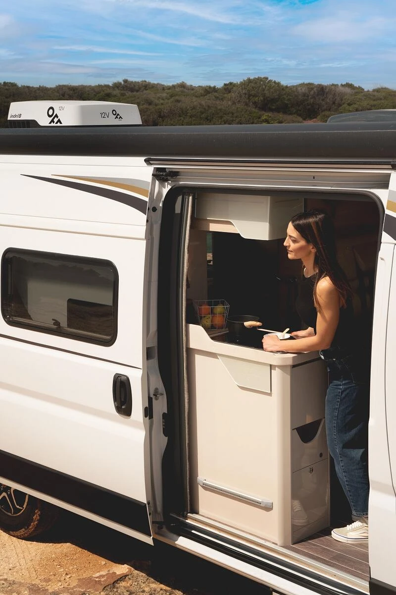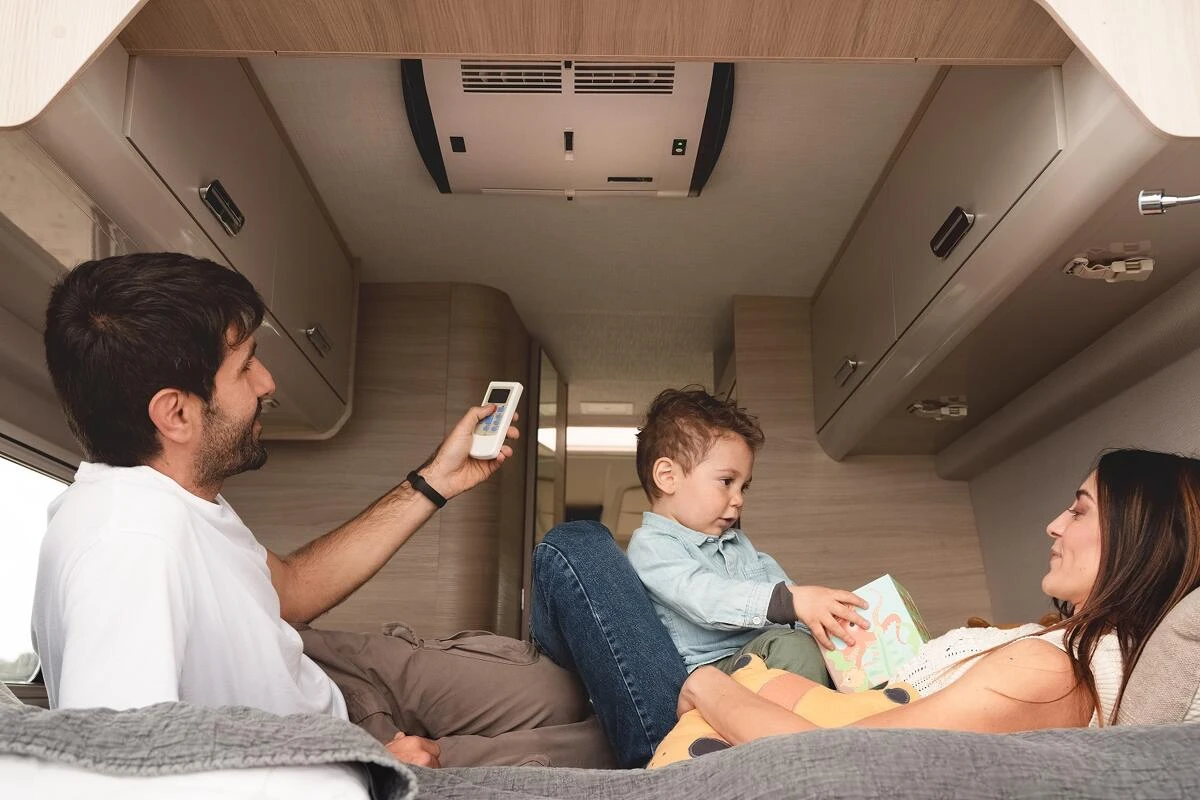 Plein-Aircon ist das erste 12V-Klimagerät für Wohnmobile und teilintegrierte Wohnmobile, das nur von der Hilfsbatterie gespeist wird, ohne die Installation von Wandlern oder Generatoren. Durch den Softstart hat die Klimaanlage einen sehr niedrigen Anlaufstrom. Außerdem wird die Installation eines Ladeboosters empfohlen. Plein-Aircon 12V ist für die Kühlung und die entfeuchtung von Wohnmobilen bis zu 6 Metern Länge ausgelegt, die eine Dachinstallation des Geräts ermöglichen. So wird der Komfort in Ihrem Urlaub erhöht und die ideale Temperatur während der Fahrt aufrechterhalten. Ein Timer und die mitgelieferte Fernbedienung erhöhen zusätzlich den Bedienkomfort.