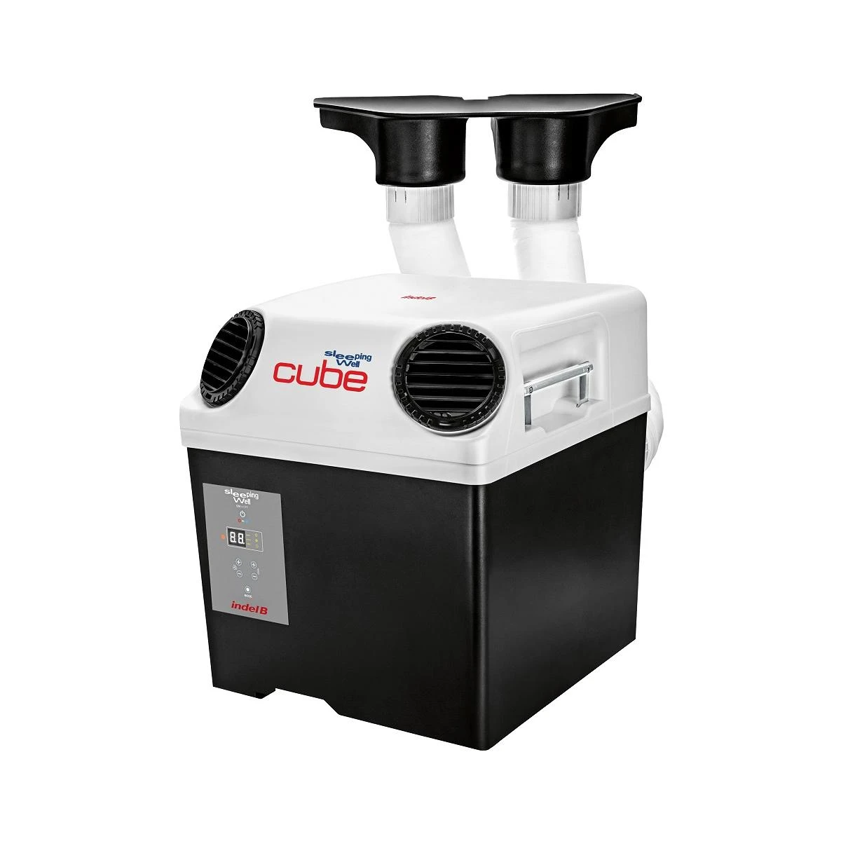 Der kompakte und leichte SW Cube 12V ist vor allem für kleine Räume wie Zelte, Zeltwagen oder Kleintransporter mit Hubdach gedacht. Er lässt sich leicht von einem Fahrzeug zu einem anderen bewegen und erfordert keine feste Installation wie alle herkömmlichen Klimaanlagen. Dank der flexiblen Luftstromschläuche passt er sich leicht an jede Umgebung an und vermittelt ein angenehmes Gefühl von Kühle und geringem Verbrauch. SW Cube 12V benötigt keine besondere Installation, schließen Sie einfach den Steckersatz an das Stromkabel an und er ist sofort einsatzbereit. Das System ist bereits geladen und aus den gleichen hochwertigen Komponenten hergestellt, die in der gesamten Sleeping Well Produktlinie vorzufinden sind. Im Automatikbetrieb optimiert SW Cube 12V die Drehzahl des Kompressors und der Lüfter und sorgt so für geringsten Stromverbrauch. SW Cube 12V ist ideal für die Kühlung von Campingzelten oder Zeltwagen, indem das Gerät an die 12V-Stromversorgung des Autos angeschlossen und die Lüftungsöffnungen nach außen verlegt werden.