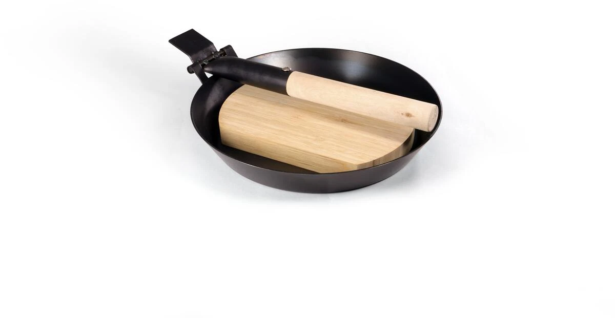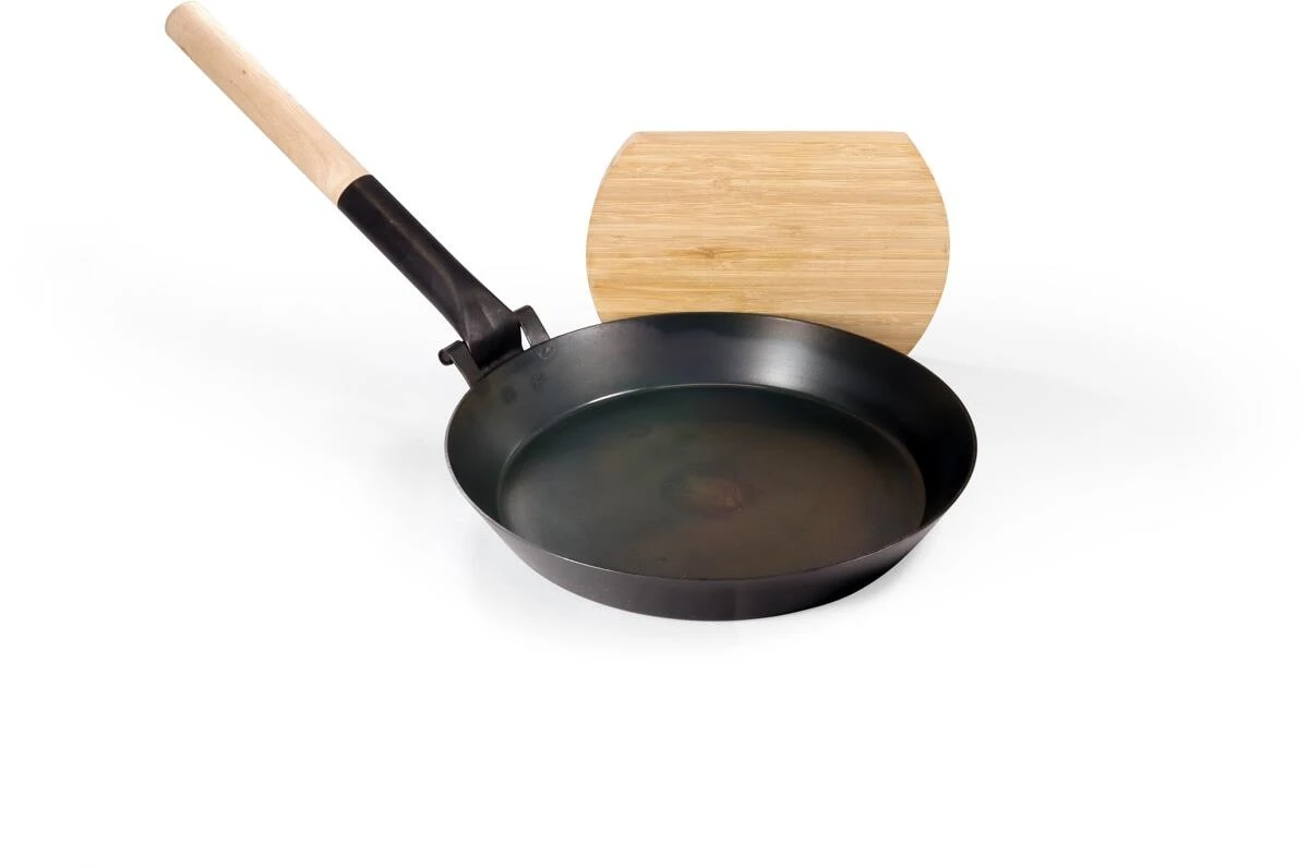 Kompakte und robuste Pfanne aus hochwertigem Carbonstahl mit zusammenklappbarem Griff. Zusätzlich ist sie mit Schneidbrett, einer Schutzhülle mit einer Kordel am Holzende ausgestattet. Die Pfanne funktioniert auf allen Herdarten wie Induktion, Gas, Elektro, Glaskeramik und Lagerfeuer. Dank der vorbehandelten Oberfläche kann sie direkt, ohne vorheriges Einbrennen verwendet werden. Besticht durch das perfekte Packmaß und ist ideal für Camping oder Wandern.