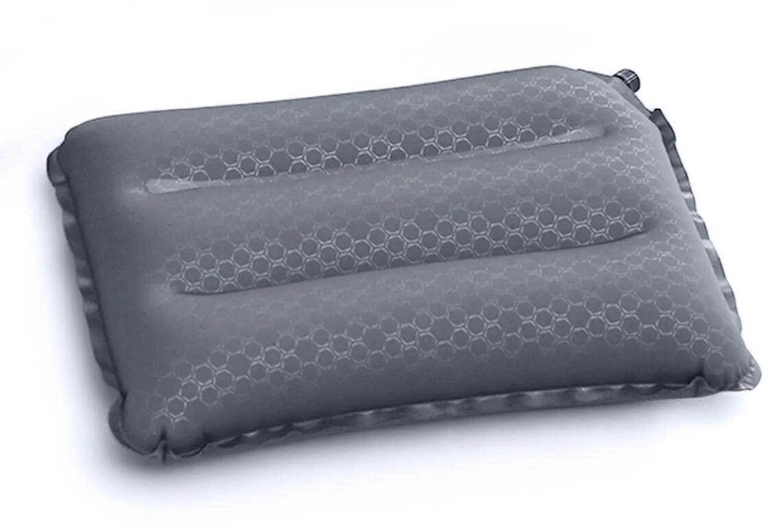 Aufblasbares Kissen für Camping, Festivals und Reisen. Es ist extrem leicht und lässt sich sehr platzsparend im Gepäck verstauen. Über die zugeführte Luftmenge kann der Härtegrad bzw. die Höhe (max. 8 cm) den individuellen Bedürfnissen angepasst werden. Die Oberfläche des Kissens besteht aus einem angenehmen Stretch Polyester und ist leicht zu reinigen.