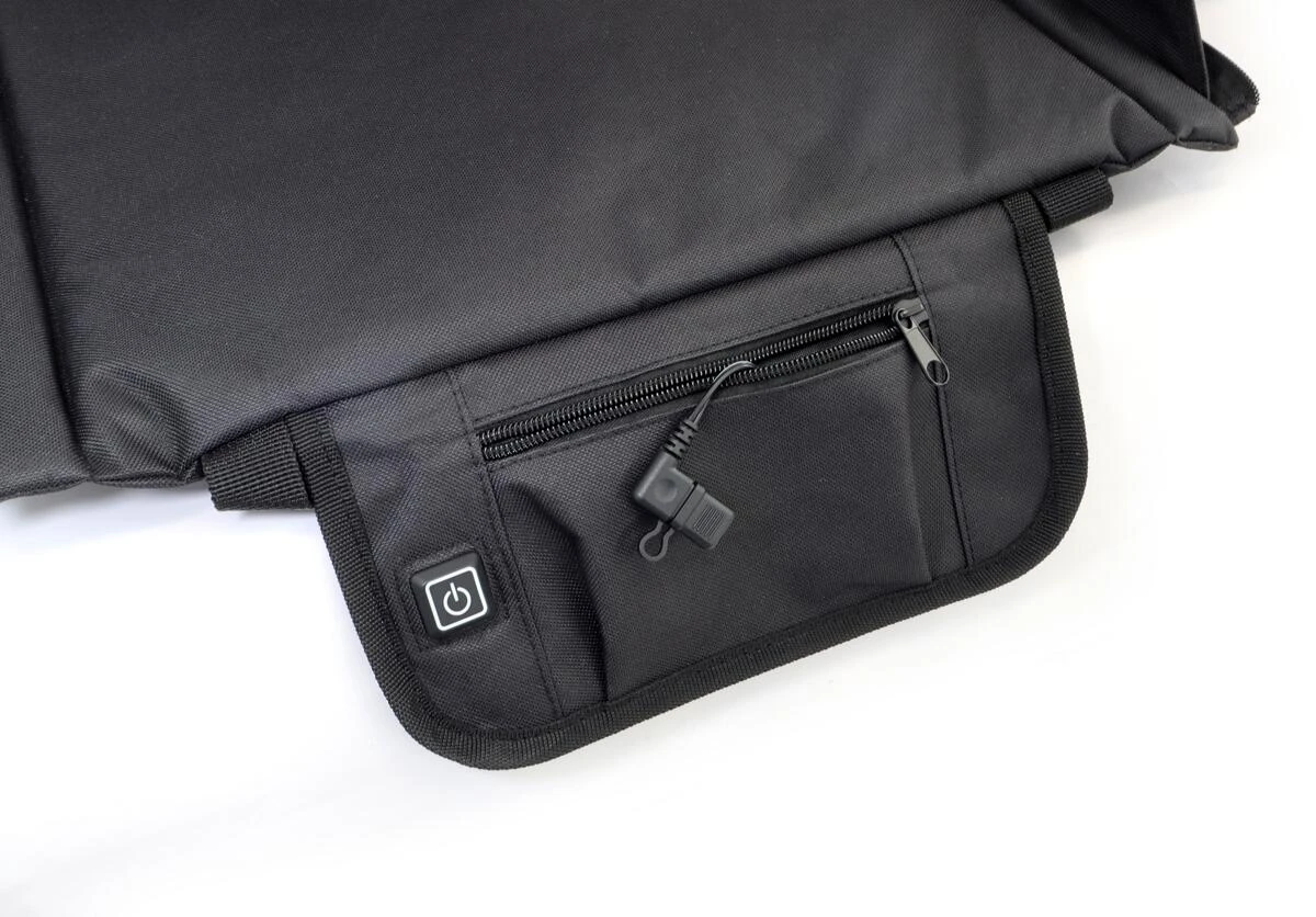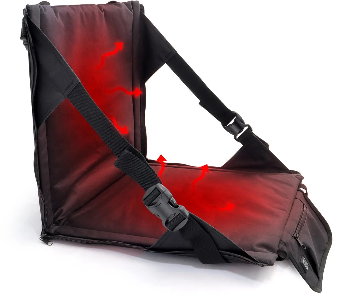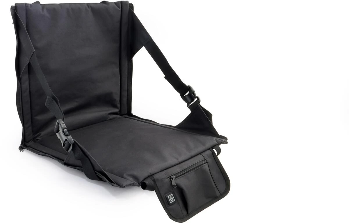 Die kompakte, beheizbare und trockene Sitzgelegenheit für die kalte Jahreszeit oder kalte Abende im Freien. Ideal für jede Outdooraktivität, egal ob im Schnee, beim Jagen, beim Camping, Festivals, bei Open-Air-Konzerten, bei der man durchaus nicht immer trockenen Boden unter sich hat. Der Stuhl verfügt über drei Heizstufen die für eine individuelle Anpassung der Heizleistung an das persönliche Wohlbefinden sorgen. Durch die Schaumschicht in der Lehne und Sitzfläche ist der Stuhl sowohl gut gepolstert als auch isoliert. Stabilität erhält der Sitz durch die eingebaute Seitenverstärkung und die verstellbaren Seitengurte. Mit den seitlichen Reißverschlüssen kann der Sitz zu einer praktischen Tragetasche umfunktioniert werden und ist somit durch sein geringes Gewicht leicht zu transportieren oder zu verstauen. Hergestellt aus robustem und wasserabweisendem Polyester. Passende Powerbank Artikel 180883 (nicht im Lieferunfang enthalten) anstecken und los geht die Wärme.