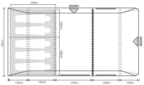 - 230 cm tiefe, abgedunkelte Twilight-Micro-Polyester-Schlafräume für 5 Personen mit einer 2/3-Reißverschluss-Trennwand