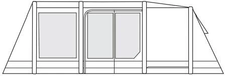 - Vordere Apsis auf der linken Seite mit Belüftung und PVC-Sturmfenster mit Reißverschluss