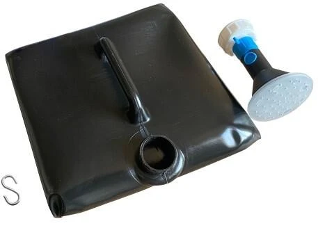 Warmduschen / Waschen durch Sonnenenergie. Ideal beim Camping, zu Hause, Garten etc. Extra großer Brausekopf. Mit Absperrhahn und S-Haken zum aufhängen.