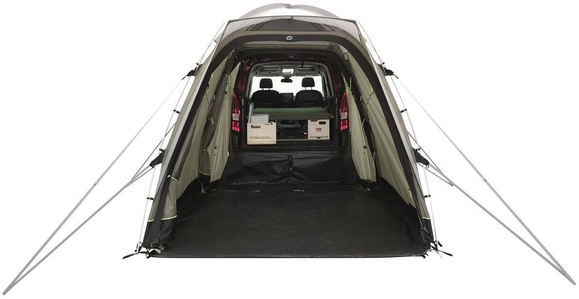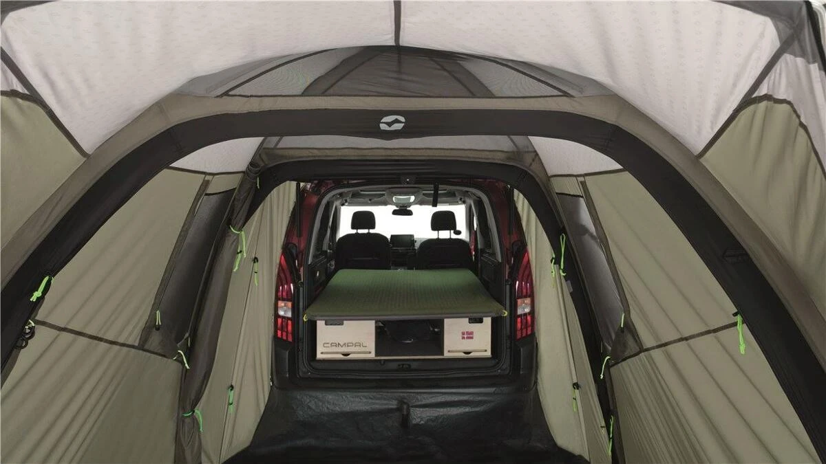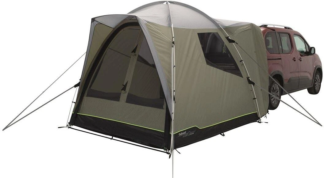 Das Outwell Beachcrest ist ein freistehendes Heckzelt für PKW, SUV und Minivans mit einer Höhe von 155 bis 185cm. Es ist perfekt für längere Aufenthalte und Kurztrips und man wird seine praktische Vielseitigkeit als freistehende Erweiterung des Fahrzeugs lieben, das Schatten, Schutz, Platz zum Entspannen oder einen zusätzlichen Schlafplatz bietet. Die mitgelieferte Bodenplane wird mit Reißverschluss und Klett mit den Zeltwänden verbunden. Der Aufbau des Zeltes geht durch das leichte Aluminiumgestänge sehr einfach. Mit dem intelligenten Befestigungssystem lässt es sich schnell am Auto befestigen und die Heckklappe öffnet in dem Schleusenbereich, sie kann aber auch verschlossen werden. Durch die freistehende Konstruktion des Zeltes kann es auch auf dem Zeltplatz zurückgelassen werden, dafür löst man die Schleuse vom Auto und schließt die Zeltrückwand. Vielseitige Belüftungen seitlich und in der Vorderwand sorgen für ein angenehmes Klima. Der große Fronteingang ist zusätzlich mit einem Vordach geschützt und in der flexiblen Schleuse kann man das Zelt von beiden Seiten betreten. Für den Schleusenbereich ist eine zusätzliche Plane inbegriffen die diesen Bereich auch von unten gegen Schmutz und Nässe schützt.