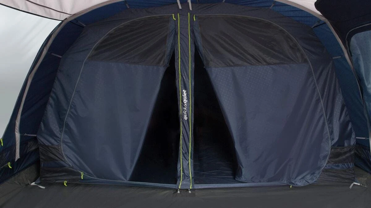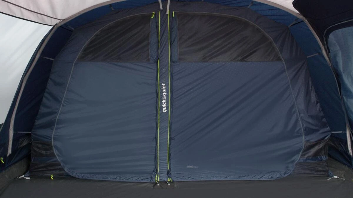 Das Tunnelzelt Nevada ist in drei Räume unterteilt und verfügt über zwei Master-Schlafkabinen vom Typ Ambassador, die mit abgedunkelten Innenzelten und den Quick & Quiet Inner Doors ausgestattet sind. Damit bietet das Zelt viel Platz für ein komfortables Leben im Zelt. Das Duratec Flex System sorgt mit seinem Fiberglas-Gestänge für eine erstklassige Stabilität sowie eine großzügige Zelthöhe und viel Platz im Inneren. Viele Fenstern, das Outwell HookTrack System, ein regengeschützter Seiteneingang mit Vordach, eine Kabeldurchführung und das Rear Ventilation System machen dieses Zelt zu einem gemütlichen zweiten Zuhause in der Natur.