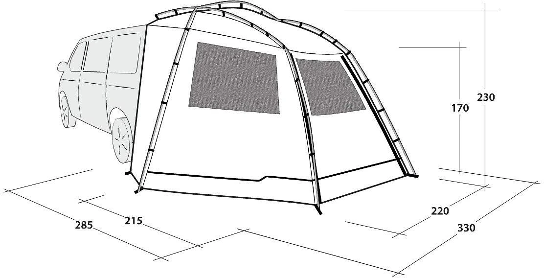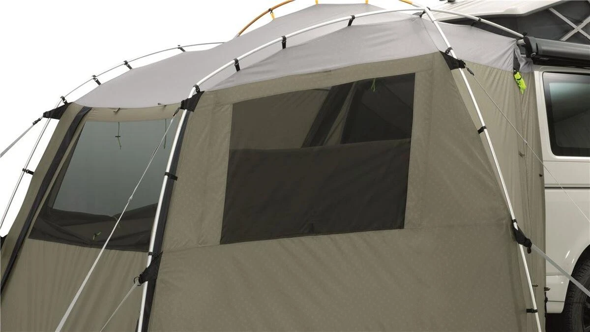 Das vielseitige Outwell Woodcrest Vorzelt ist ideal für Paare, kleine Familien und Freunde und ist ein großartiger Begleiter für Urlaubsreisen. Das auffällige, freistehende Kuppeldesign kann mit Hilfe von verstellbaren Stoffdreiecken an der Vorderseite leicht an der Seite oder am Heck von Reisemobilen oder kleineren Bussen befestigt werden. Dank des kompakten und leichten Aluflex-Systems mit vorgebogenen Aluminiumstangen und Clips lässt sich das Zelt schnell und einfach aufbauen. Für noch mehr Belüftungsmöglichkeiten bietet das Outwell Woodcrest Vorzelt insektensichere Netzfenster mit wasserdichten Zip-up Vorhängen. Für besonders viel Platz zum Entspannen kannst du die vorderen und hinteren Türen aufrollen oder sie als Vordach nutzen, um an der frischen Luft zu entspannen und die Natur zu genießen.