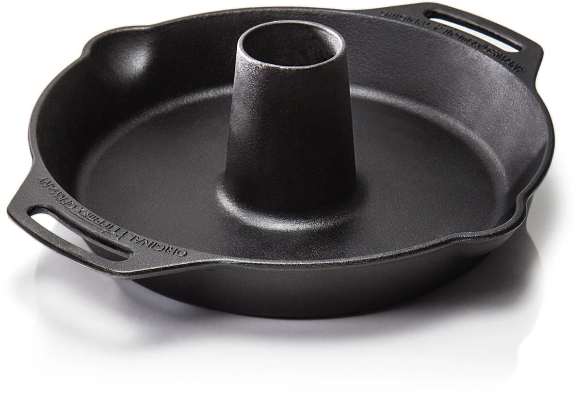 Mit dem Petromax CF30 Geflügelbräter ist saftiges Geflügel aus Ofen oder Kugelgrill kein Zauberwerk mehr. Die Vertiefung in der Mitte des Geflügelbräters wird vor der Verwendung mit Gewürzen & Kräutern und einer Flüssigkeit wie Bier, Wein oder Brühe gefüllt. Während des Grillvorgangs werden diese Aromen freigesetzt. Die verdampfende Flüssigkeit sorgt für Feuchtigkeit und für eine optimale Verteilung der Aromen im Inneren des Geflügels. Der aus Gusseisen gefertigte Bräter sorgt für eine optimale Hitzeverteilung und das Brathähnchen wird gleichmäßig knusprig gegart. Das überschüssige Fett und der Bratensaft fließen in die Auffangschale.